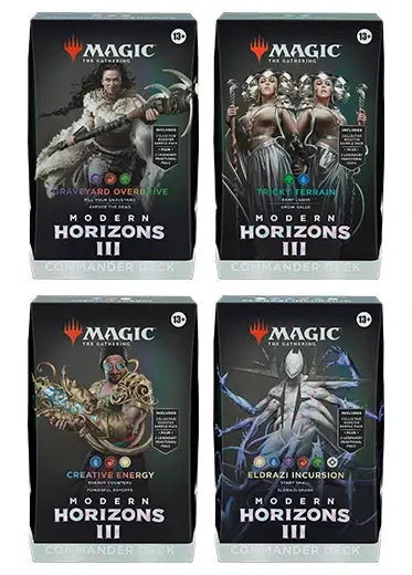 Modern Horizons 3 comes with Commander Decks! These pre-constructed Decks give you everything you need to jump into a game with friends and battle it out in MTG’s most popular format.