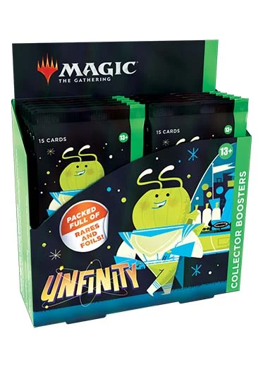 Unfinity is an MTG Set that‘s Magic in space with loads of retro-futuristic fun. This Magic the Gathering Collectors Booster Box provides any collector with a fresh stock of MTG Cards to enhance their collection or build their latest MTG Deck.