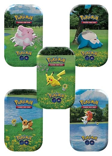 The Pokemon Go Mini Tin Set of 5 is the complete collection of art tins, each containing booster packs, a coin and an art card of the tin image. This is a brilliant way to enjoy this iconic set, that combines the worldwide sensations of Pokemon Cards and Pokemon Go to create cards inspired by the art style of the mobile game.